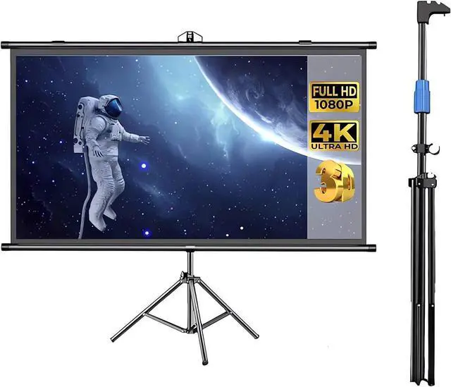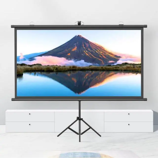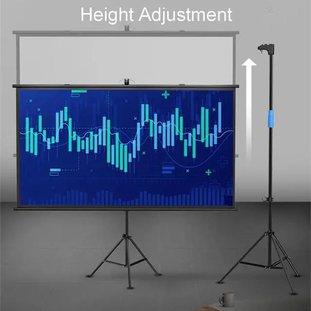 Projector screen with tripod, floor-standing design can be quickly installed, height adjustable, stable and not shaking, both portability and stability