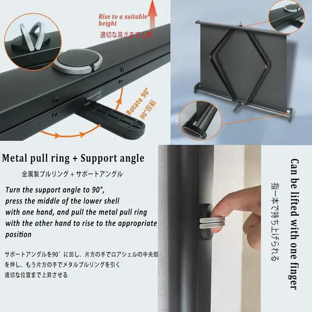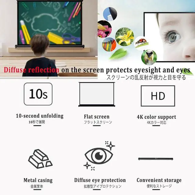This retractable projection screen is designed with a black edge to absorb direct light and protect your eyes, which helps to improve contrast and enhance the visual experience. The casing is made of aluminum alloy, sturdy and durable, the desktop projection screen is lightweight and small in size, easy to store and install. Quick to install and easy to display images anywhere and anytime, ideal for traveling.
