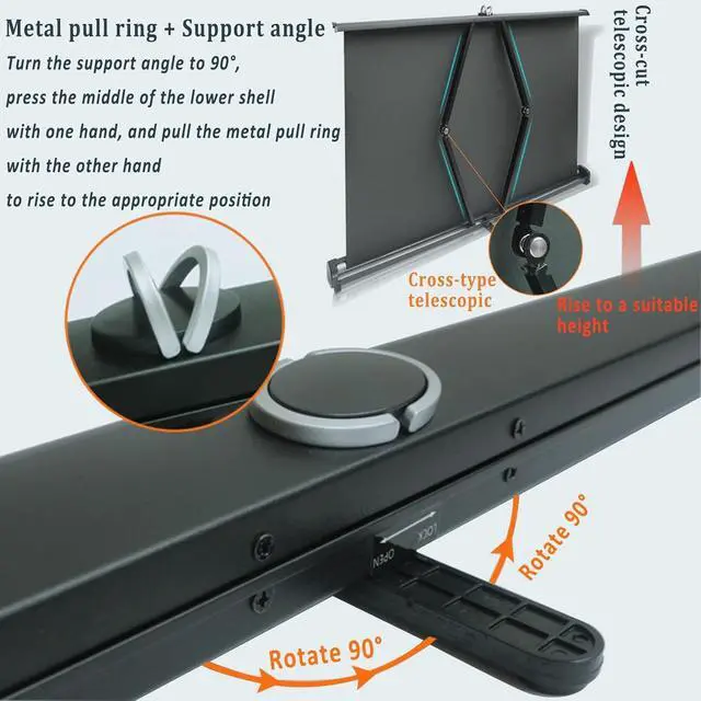Portable HD projection screen can throw clear and sharp images. Whether you are with your family, friends or colleagues, floor standing projection screen, mobile portable desktop projection screen, watch your favorite movies anytime and anywhere, support 4K HD, create a new experience for you and your friends. Both can enjoy the best visual experience indoors and outdoors. Small and lightweight, easy to carry, foldable and convenient to use, suitable for home meetings, outdoor driving and other occasions.