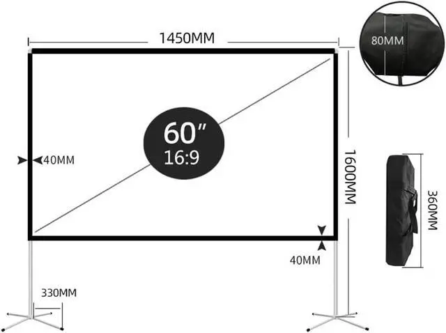 Diagonal size: 60in, 80in, 100in, 120in