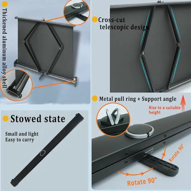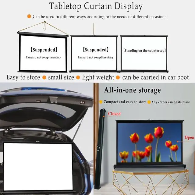 The projection screen is lightweight, small and quick to install on any flat surface or table, perfect for outdoor viewing, indoor parties as well as classroom and office presentations. The screen is made of thickened fiberglass material with 2.2 times color gain for richer colors and clearer projection, which can provide the ultimate HD viewing experience while protecting your eyes.