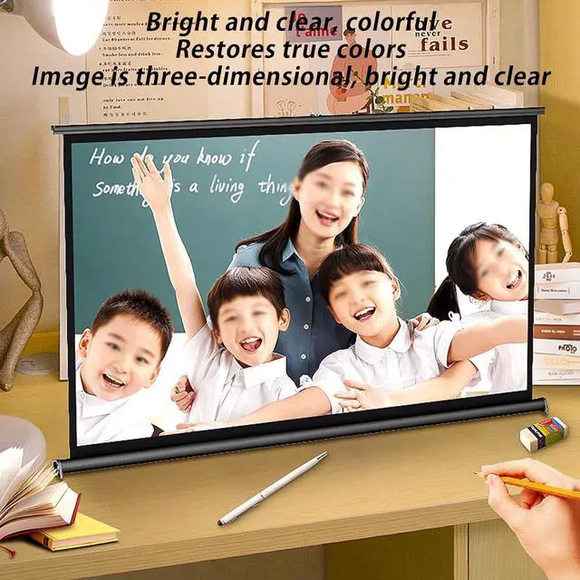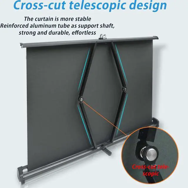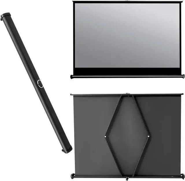 This portable foldable wrinkle-free projector screen is made of white fiberglass with high brightness gain and strong light absorption to enhance image brightness, colour saturation, contrast and fidelity. The one-piece telescopic design is lightweight and durable enough to be used by a single person. Can be unfolded and placed on any flat surface or tabletop indoors or outdoors, perfect for mobile meetings, video games and movies, travelling, home theatre, office presentations, school meetings, backyard viewing and more.