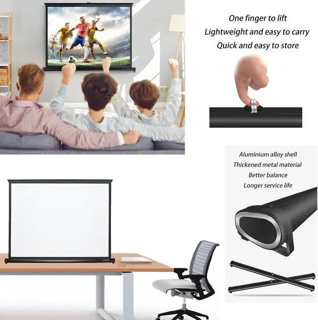 Features: 10 seconds to unfold / metal shell / flat screen surface / diffuse reflection eye protection / support 4K HD / easy to store