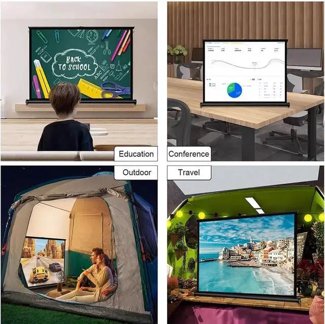 Portable projection screen, desktop projection screen, mobile projection screen, lightweight and durable pull-out system, suitable for indoor and outdoor use in school conference rooms, floor-standing projection screen