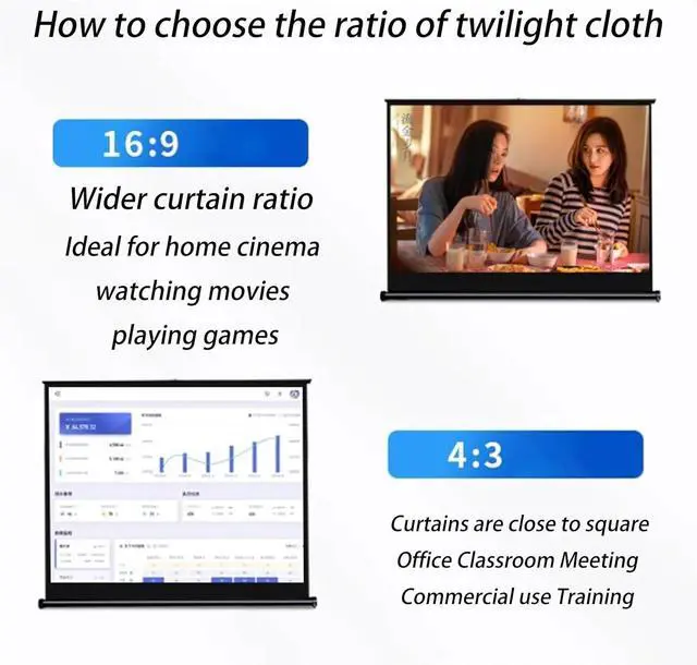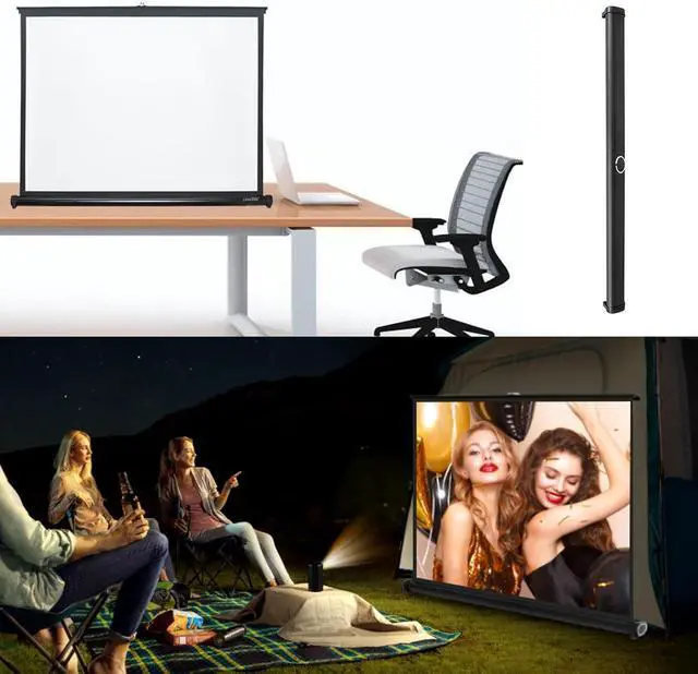 Portable desktop projection screen, 30", 40", 50" HD manual projection screen, 4:3/16:9 mobile projection screen, foldable outdoor projection screen for home office classroom