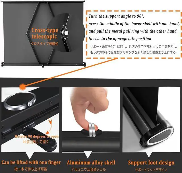 This retractable projection screen is designed with black paneling on all four sides, which helps to improve contrast and enhance the visual experience. Absorbs direct light for healthy eye protection. Small size and light weight, easy to carry and quick to install. The retractable design is easy to display images anywhere and anytime, ideal for traveling and outdoor use.