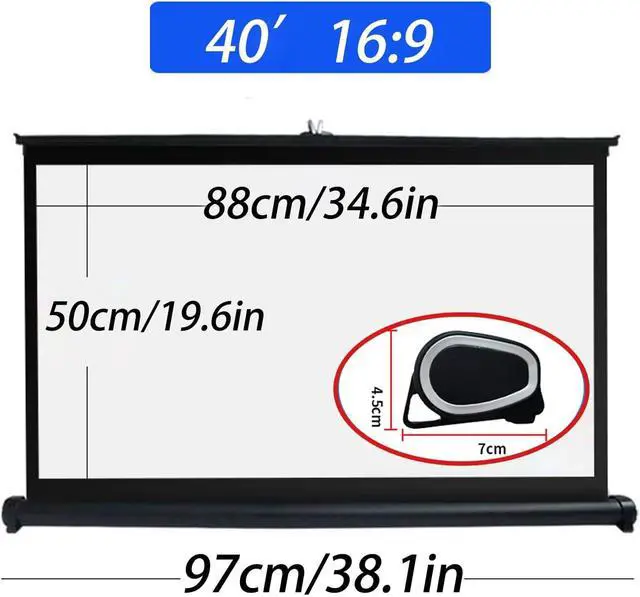 Portable Projector ScreenDesktop Projection ScreenMobile Projection Screen, Lightweight Carry Durable Easy Pull Out System for Schools Meeting Conference Indoor Outdoor Use(16:9,40")