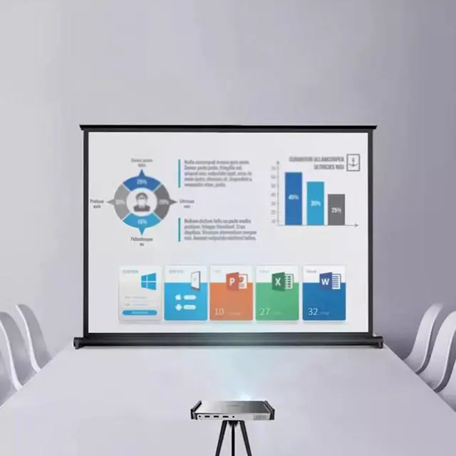 Portable projection screen, desktop projection screen, mobile projection screen, lightweight and durable pull-out system, suitable for indoor and outdoor use in school conference rooms, floor-standing projection screen