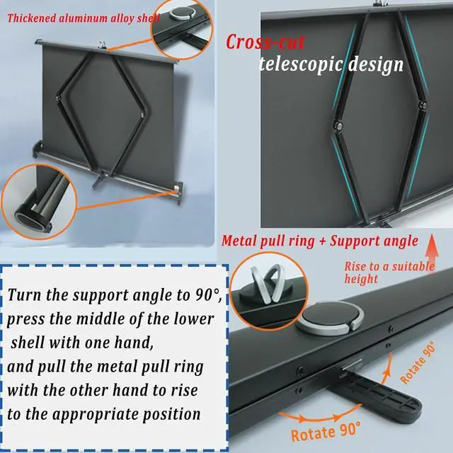 The back of the tabletop projection screen is designed with cross-cut stabilization, you can stand on any flat surface or table, stable and not shaking, to enhance the movie viewing experience.