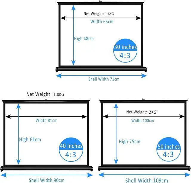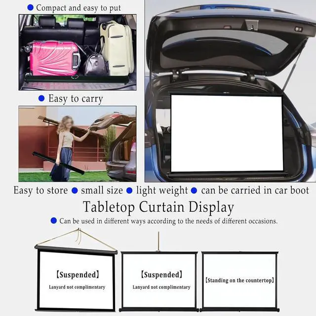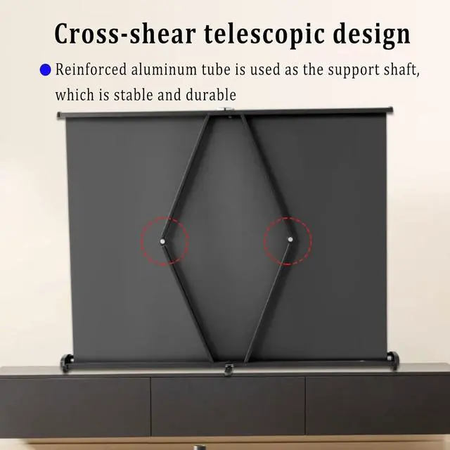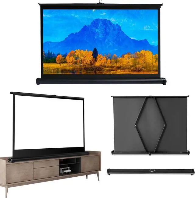 The tabletop projection screen is light resistant and has a 2.2x color gain, which gives a better picture in less brightly lit environments.