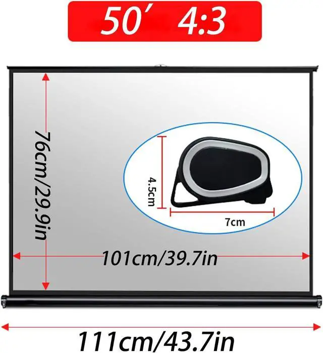 Portable projection screen self-standing pull-out, retractable desktop screen, mobile projection screen for indoor and outdoor home theater, white screen 4:3/16:9 format