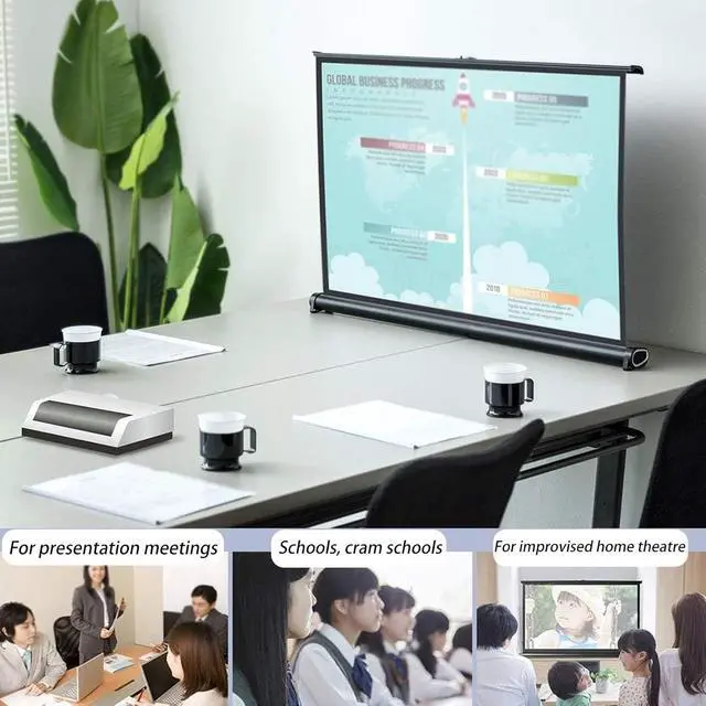 Portable desktop/tabletop projection screen, mobile movie screen pull-up high-definition screen with storage bag, movie projection screen outdoor 30/40/50 inches, 4:3, 16:9 manual pull-up projection screen