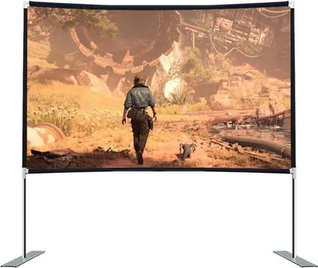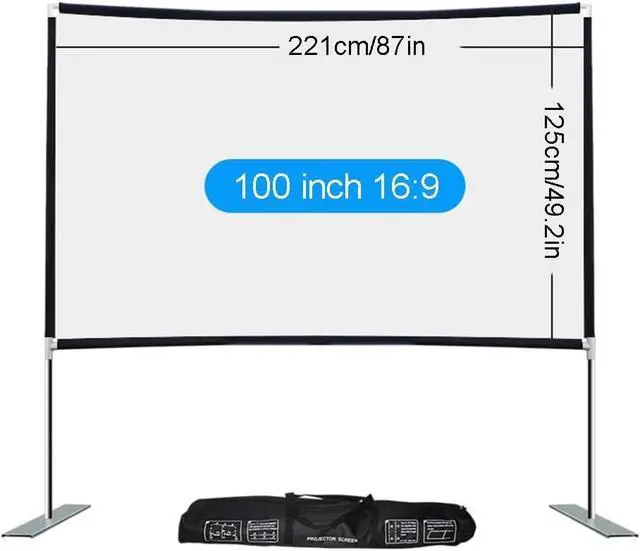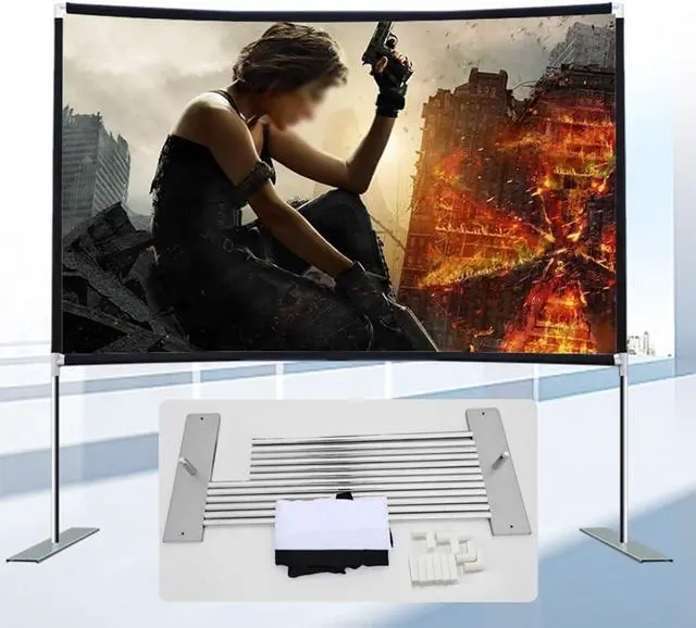 Portable projection screen with bracket, lightweight and with a carrying bag, easy to install, anytime and anywhere to unfold a clear and large field of vision, so that the light and shadow sharing is not restricted