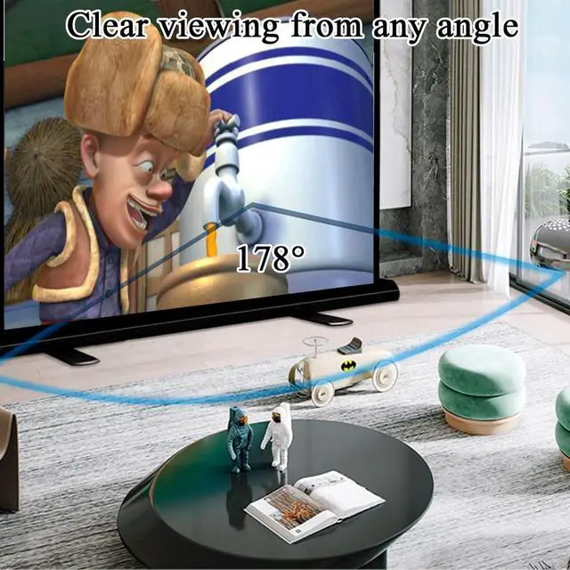 178° viewing angleThe projector screen has a viewing angle of up to 178°, allowing you to see accurate, clear and bright images from any direction without having to squeeze in front of the screen with friends to watch.
