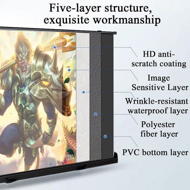 High-quality materialsThe projection screen is of high-definition type and is made of white fiberglass material, similar to the original screen fabric, compatible with 4K and HD images. The screen has a matte texture with a slight gloss, which is very suitable for projecting images in large rooms such as conference rooms and living rooms.