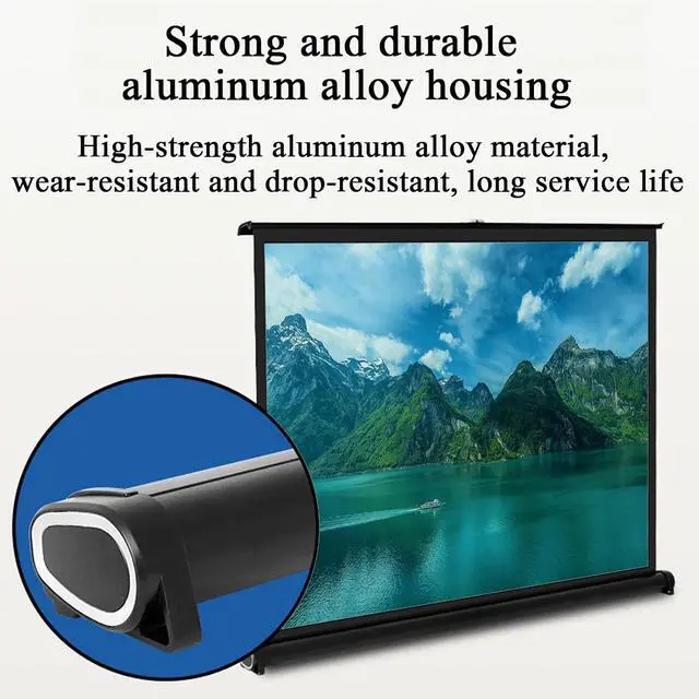 SpecificationsMaterial: white fiberglass screen + aluminum alloy pull ring + aluminum tube support shaft + metal shell. Aspect ratio: 4:3, 16:9. Size: 30 inches, 40 inches, 50 inches. Packing list: 1 projection screen, 1 storage bag. Note: Please wipe the screen with a damp cloth. Do not hand wash or machine wash.