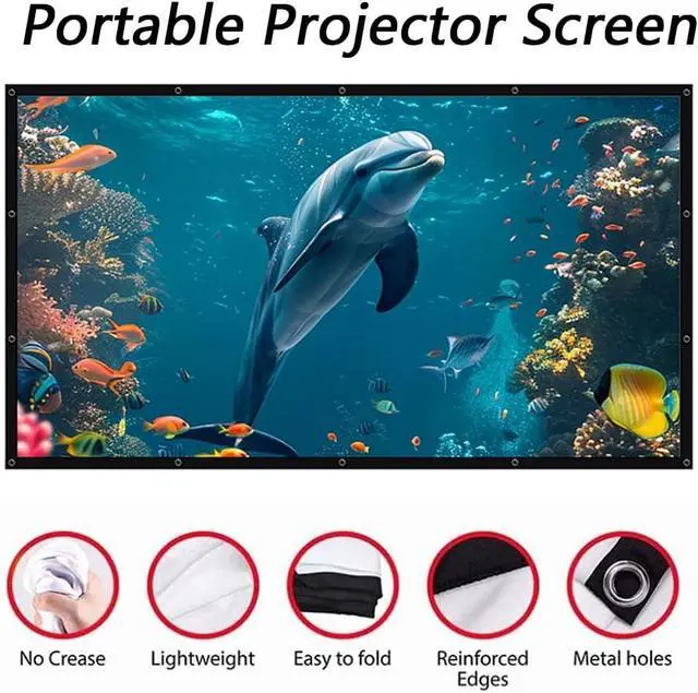 Anti-crease projection screen: The projection screen is made of soft-touch, elastic, thick polyester fiber to ensure maximum wrinkle-free performance, providing clearer images, brighter colors, and no color bias