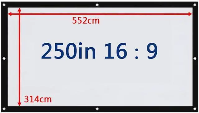 100in (220x125cm), 110in (243x140cm), 120in (265x152cm), 150in (332x190cm),