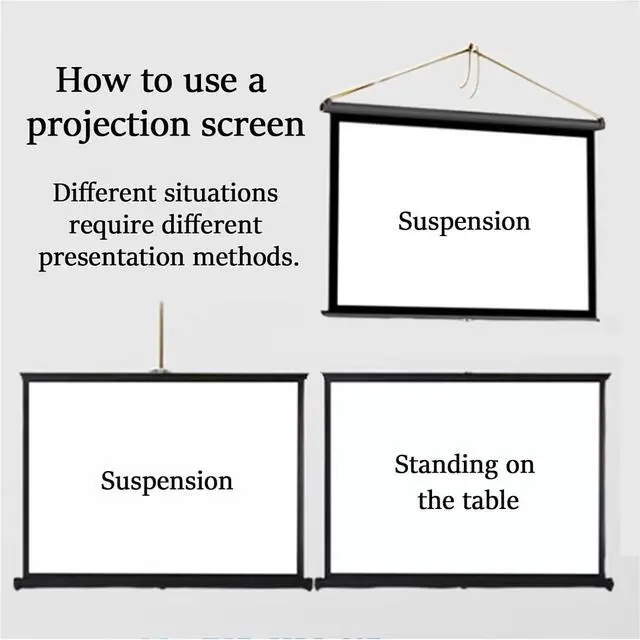 Easy to StoreThe projection screen can be easily installed anywhere and can be compactly stored in the box when not in use, without taking up too much storage space. It is convenient because you can stop it exactly at the desired height and fine-tune the screen size according to the installation location.