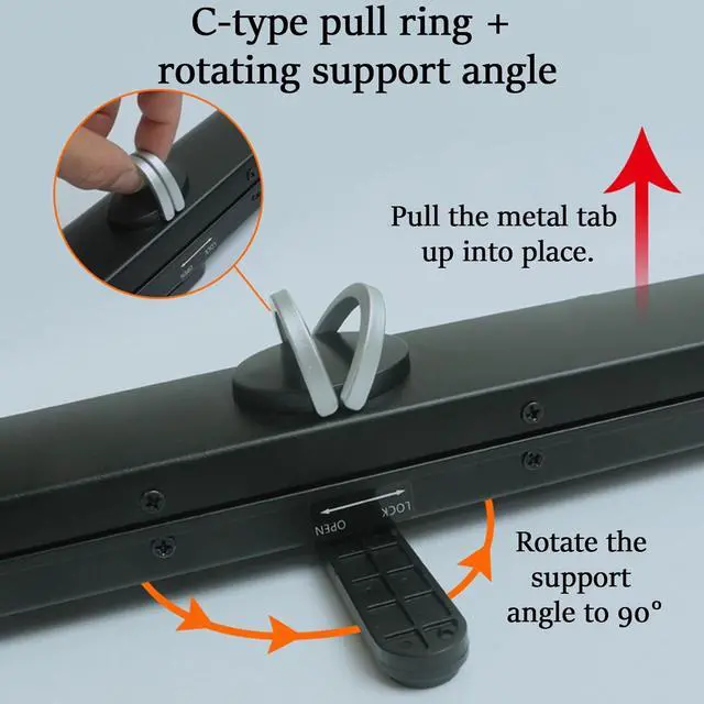 Stable StructureThe projector screen maintains a stable structure through a tension frame, and the freely retractable bracket makes the entire product stable and sturdy. The aluminum shell ensures stability and durability.