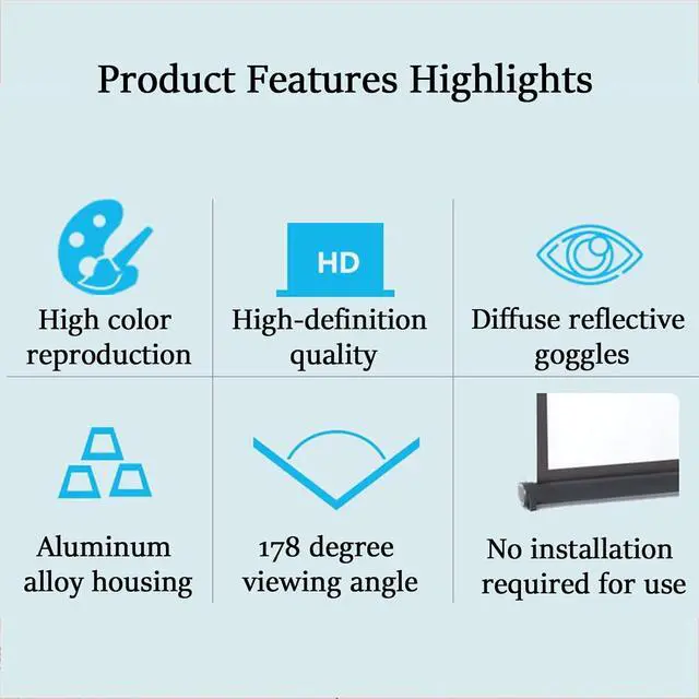 170° Wide Viewing Angle High PerformanceWith a 170° wide viewing angle, it can withstand long-term use and is also wrinkle-resistant. The portable projector screen is compact and lightweight in design. The horizontal opening design provides a 170-degree wide viewing angle for comfortable viewing.