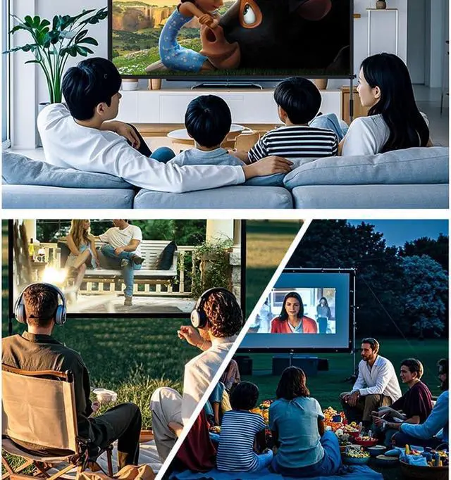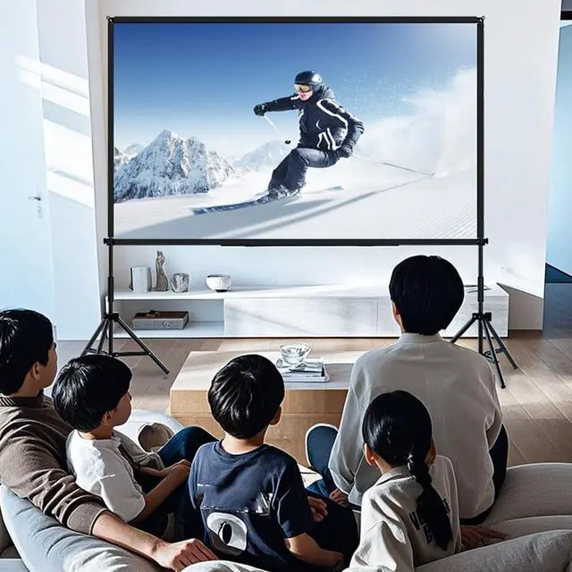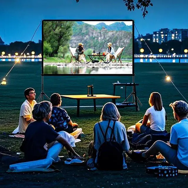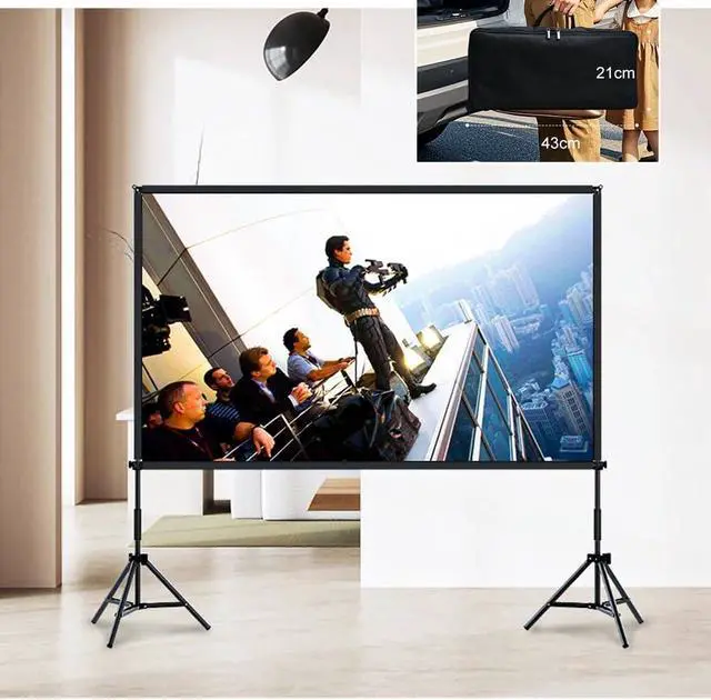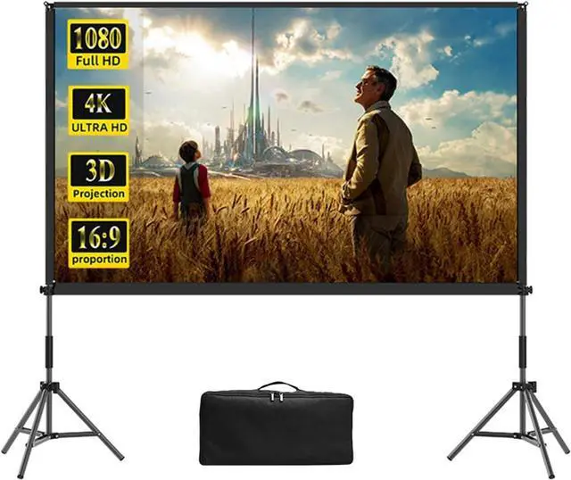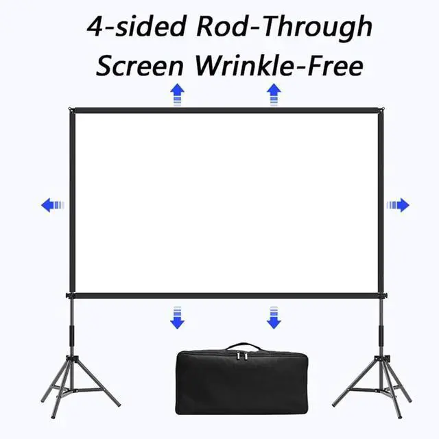 Projection Screen with Stand and Carry Bag. Easily transport it for family trips, camping, or backyard movie nights. Elevate your projection experience and enjoy crystal-clear visuals wherever you are.