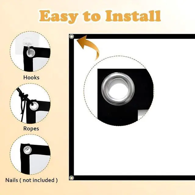 Easy to install: The projection screen is easy to install, just install it in the right place, and you can watch movies with your family and friends