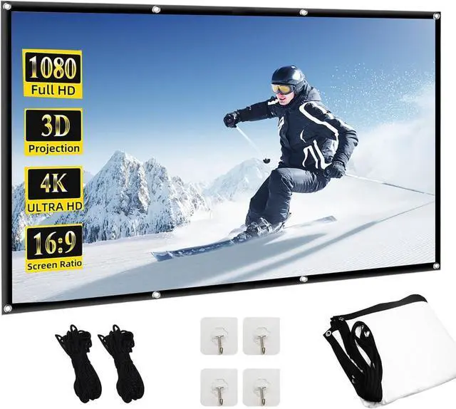 Easy installation: The projection screen comes with ropes and hooks. It can be secured to walls or stands using hooks, ropes, brackets, nails, or 2-sided tape