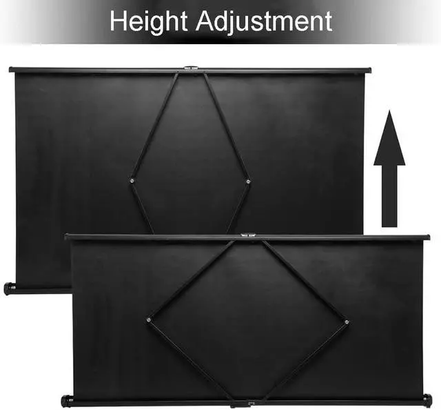 Manual projection screen with retractable support bar on the back, adjustable height, easy to use