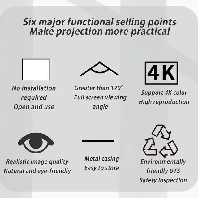 Multiple Uses: you can use this projector screen in any indoor or outdoor environment, such as living room, garden, patio, classroom, office.