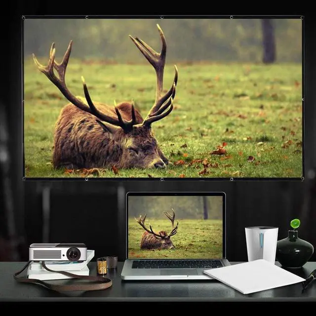 The projection screen can be easily secured with hooks and double-sided tape on the wall/bracket.