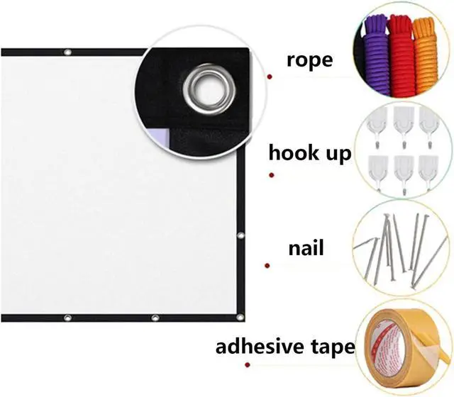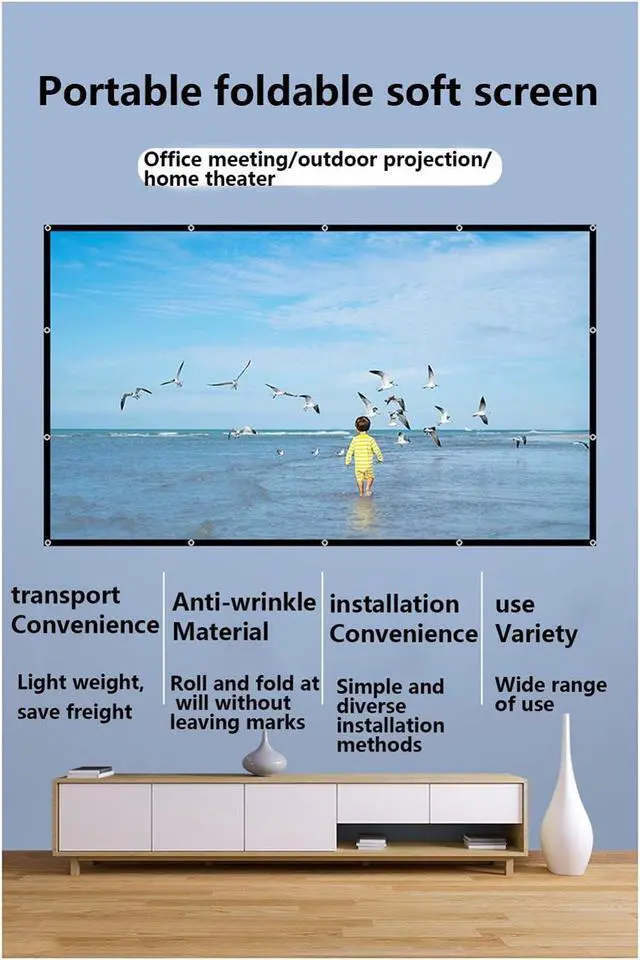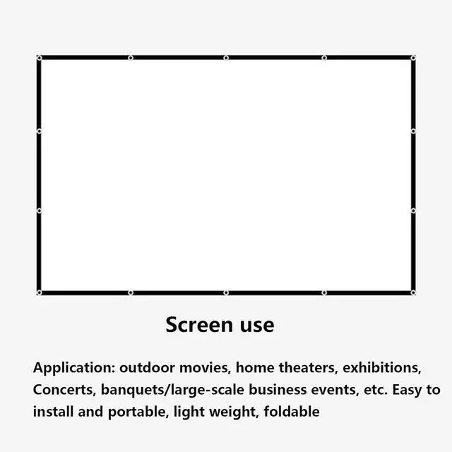 Anti-wrinkle screenThickened milk silk polyester material. The surface of the foldable projection movie screen is smooth, so you don't need to worry about wrinkles. The video projection screen supports hand washing and ironing.