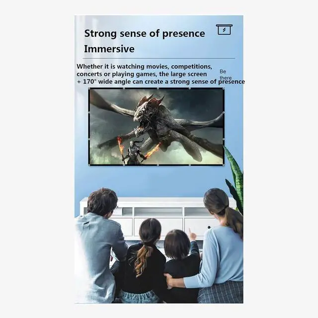 Projection screen with bracket: 100-inch portable projection screen, 16:9 format, 170° wide viewing angle. Provides clear and high-resolution images, and even supports front and back projection.