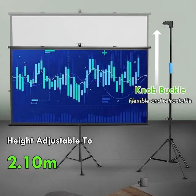 Tripod Stand: The sturdy tripod stand is extendable and adjustable, with spring tension at the end to maintain the stability of the entire screen, especially for outdoor use