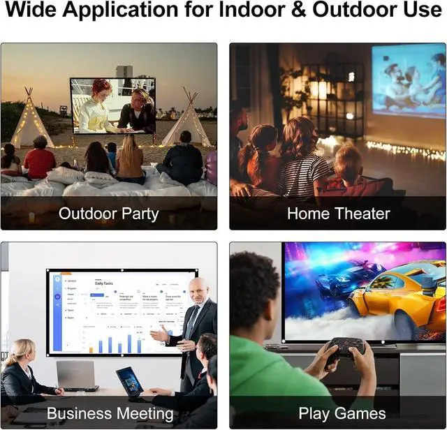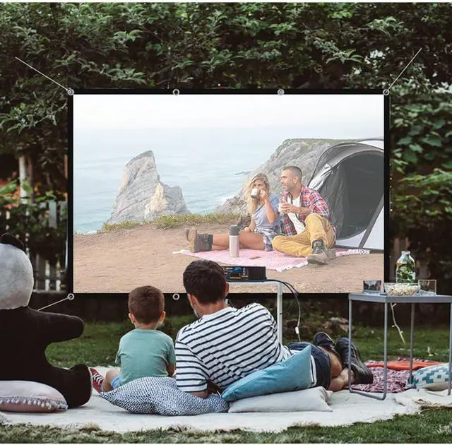 Projection screens are versatile, suitable not only for indoor settings like home theaters, education, business presentations, offices, classrooms, or gaming, but also for outdoor activities such as camping or swimming