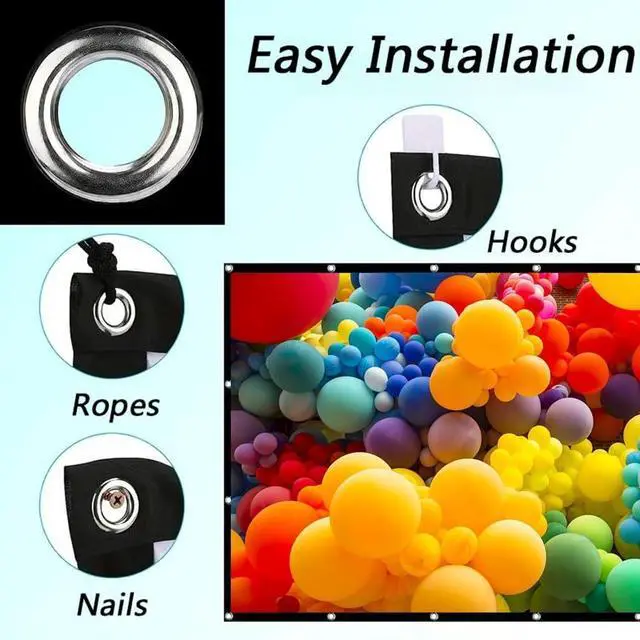 Projection screens can be easily secured to walls or stands using hooks and ropes. Installation is straightforward, requiring no tools for quick setup, effortlessly launching your worry-free viewing experience