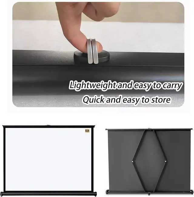 Portable and space-saving: The desktop projector screen is lightweight and easy to carry, no assembly required, and can be used in seconds. When not in use, it can be rolled up and does not take up space.
