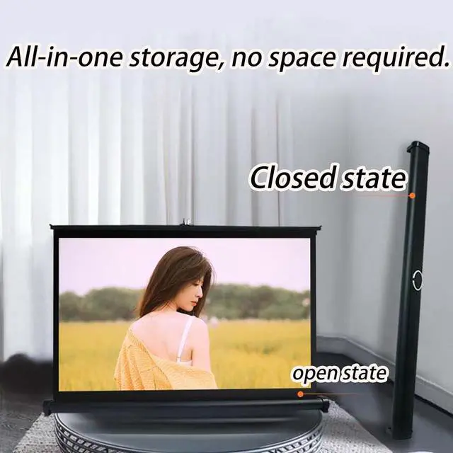 The freestanding projection screen can be placed on a table or on the floor. It is easy to install; just place the screen and pull it up, and you can easily enjoy the visual feast brought by the big screen.