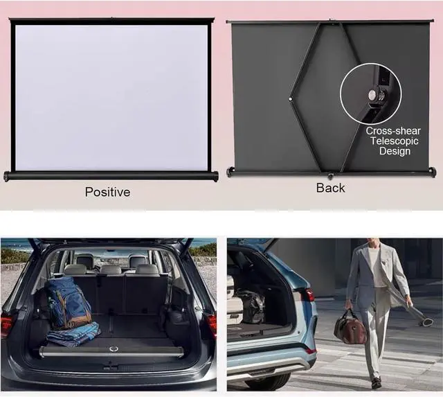 A variety of sizes are available: portable projection screen, free-standing desktop/floor-standing projection screen. No installation required, just pull up the screen and you can easily enjoy the video anytime, anywhere. Available in a variety of sizes, including 30/40/50 inches and 16:9/4:3 ratios, you can choose the most suitable size according to your needs.