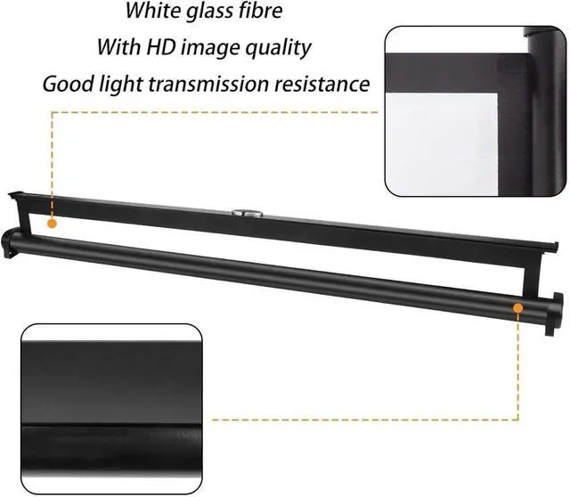 Premium Projection Screen: Thick white fiberglass, naturally stretchable, wrinkle-resistant, and features high-definition, high-contrast images. The projector screen has a wide 160° viewing angle, allowing you to see clear images from anywhere in the room.