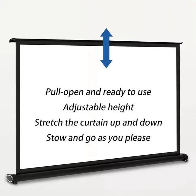 Desktop projection screen: The screen is equipped with a quick pulling system, which takes only a few seconds to pull the screen up or down, which is very convenient and user-friendly.