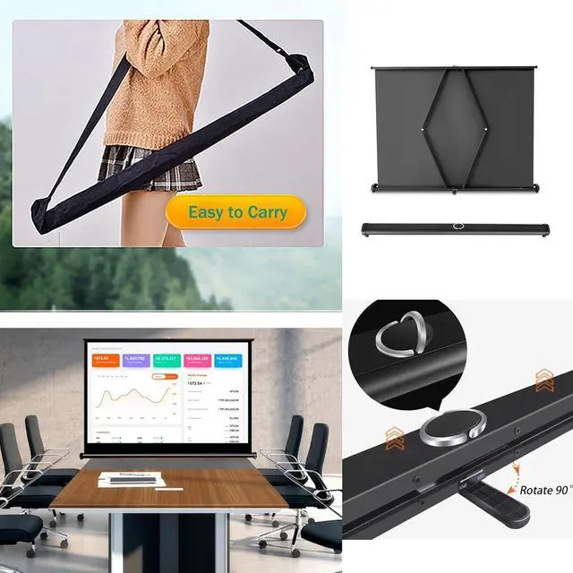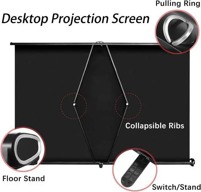 Desktop Projection Screen: The portable projection screen can be placed on a flat floor or desktop, easy to install, and comes with a sturdy base for added stability. In addition, the thickened aluminum alloy shell is sturdy and durable.