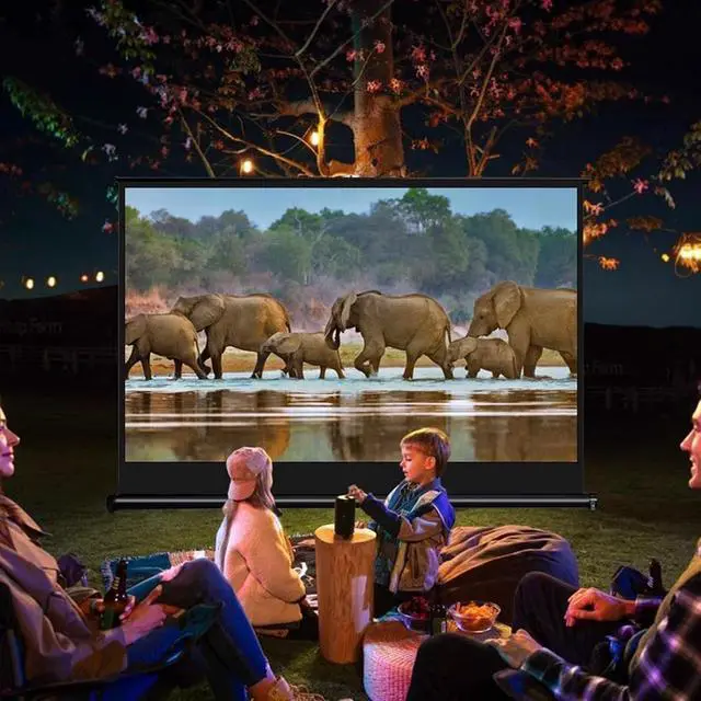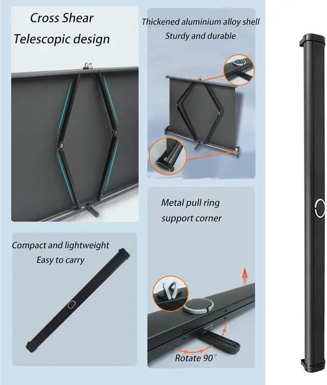 Wide Range of Applications: The HD projector screen is designed to be placed on any flat floor or table, indoors or outdoors, with countless mounting options. Perfect for mobile conferencing, video games and movies, travel, home theater, office presentations, school meetings, backyard movie nights, and more.