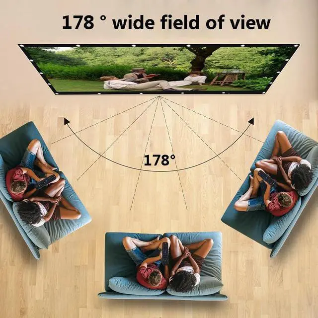 178° Panoramic Viewing Angle: You can choose the most comfortable viewing position to enjoy it, even if there are many people gathering, it is not affected by the angle position, and you can easily enjoy a wonderful movie night