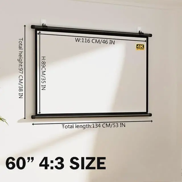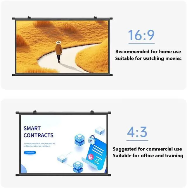 Projection Screen Format: The projection screen adopts two different formats of 16:9/4:3, which is suitable for home theaters, schools, camping, meetings and many other indoor and outdoor occasions