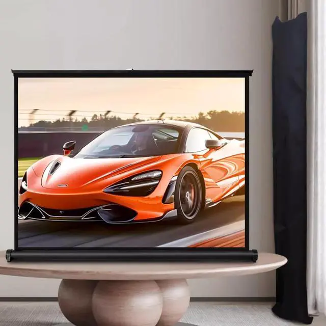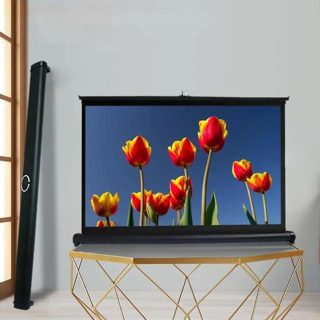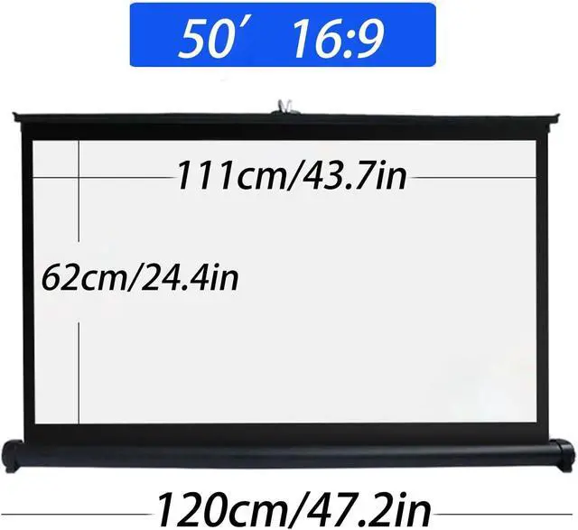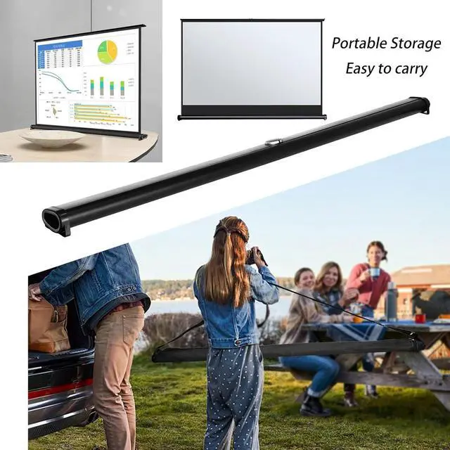Material: The manual projection screen is made of white fiberglass, with high-definition picture quality and good light resistance, bringing you and your family a high-definition visual experience. It can be used on various flat surfaces such as desktops