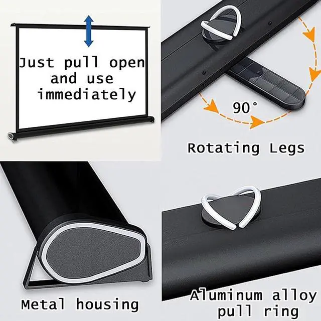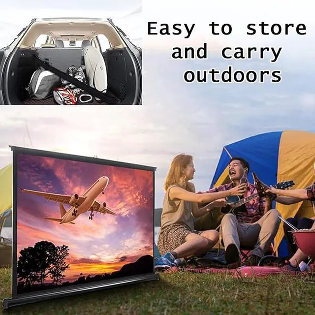 Multi-scene useThe projection screen can be used in a variety of scenes such as home, office, classroom, camping, home theater, business presentation, outdoor film festival, educational purposes, etc. This is an easy to use item that can be used for travel and events. It can also be used as a TV.