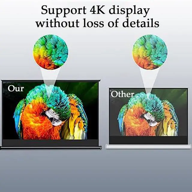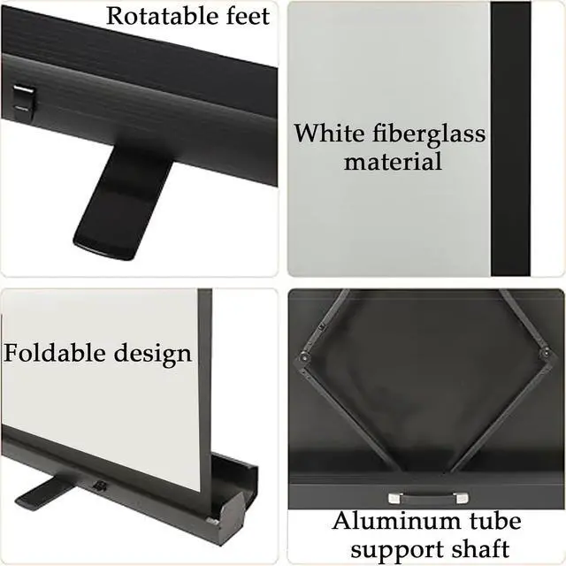Reasonable designThe projection screen bracket is designed to be lightweight and portable and easy to assemble. The black metal frame can be fixed squarely to prevent the corners from bending. The thick material is 3 times thicker than other inferior materials, and there is a coated material on the back, so you can see a clear image even if the sun shines.