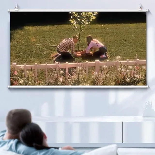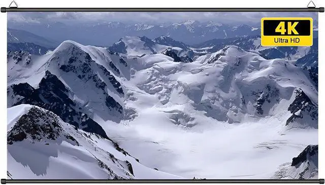Applicable to Multiple Scenes: The projection screen can be rolled up and stored, which is easy to carry. The 16:9 format is suitable for home theaters, and the 4:3 format is suitable for conference presentations