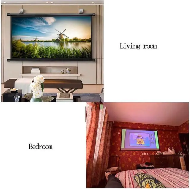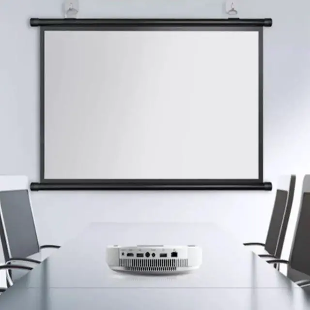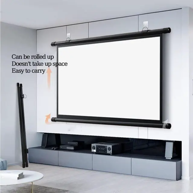 The manual projector screen is easy to carry and store, lightweight, easy to roll up, and does not take up extra space when stored. It is perfect for both indoor and outdoor use and can be mounted on walls and ceilings.